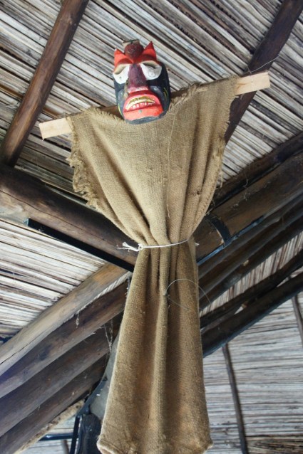 We got some more serious rain and fog on our travels at Arunal Volcano, so we decided to travel early morning in the direction of San Jose. We stopped at a Soda, a type of Costa Rica restaurant serving simple but good food. In this case some grilled Pollo (Chicken). We stopped at a little museum showing pieces from the indigeneous culture of Costa Rica. Amongst other the Boruca, an area we visited earlier during the trip. The Borucas are known for their carved masks, and we bought one from them to hang on our “Wall of Masks”.